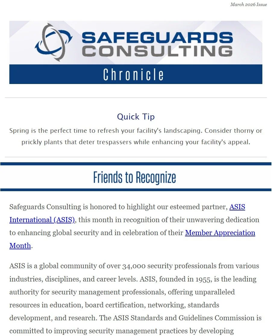 Our team is proud to share that we recently released the March issue of our firm's monthly newsletter, The Safeguards Consulting Chronicle, and we would love to invite you to subscribe for free.